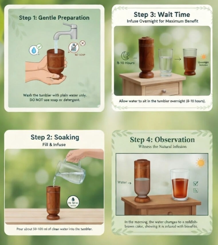- Natural Vijaysar Wood - Crafted from pure Indian Vijaysar (Pterocarpus marsupium) heartwood, it contains no chemicals, preservatives, or artificial polish and offers you a completely safe, nature derived daily wellness tool trusted for centuries.